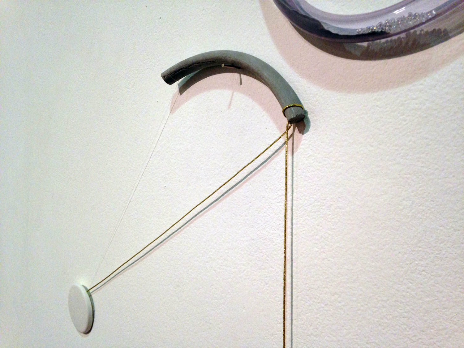 The sculptures that form part of the Serie Pendurada were made during the artist residency Largo das Artes in Rio de Janeiro, July 2015. The series investigates the activation of empty space and the possibilities and limitations of materials. The work explores tension and balance between the hung and grounded, the translucent and solid, the light and heavy.